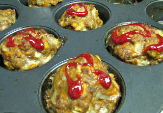 3. Spray muffin pans with oil. Form meatballs to fit into muffin tins. Put remaining ketchup on top of the mini meat loaves. Bake for 25-30 minutes.