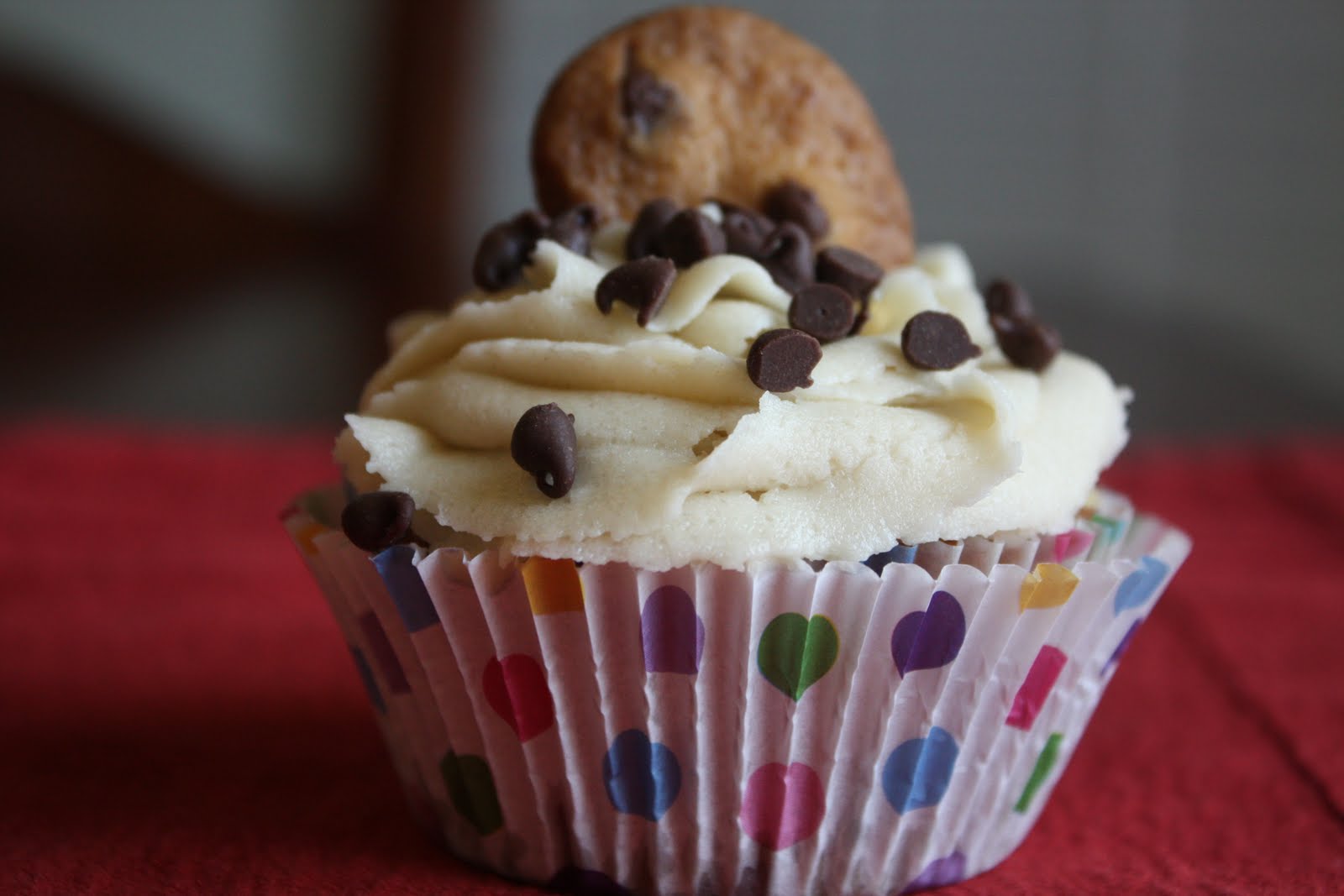This recipe is from Annie's Eats. I made them these for Hailey's 2nd birthday. It's a chocolate chip yellow cake with an eggless cookie dough filling, topped with a brown sugar buttercream. Definitely not an every day dessert because they're really rich, but awesome if you love cookie dough!